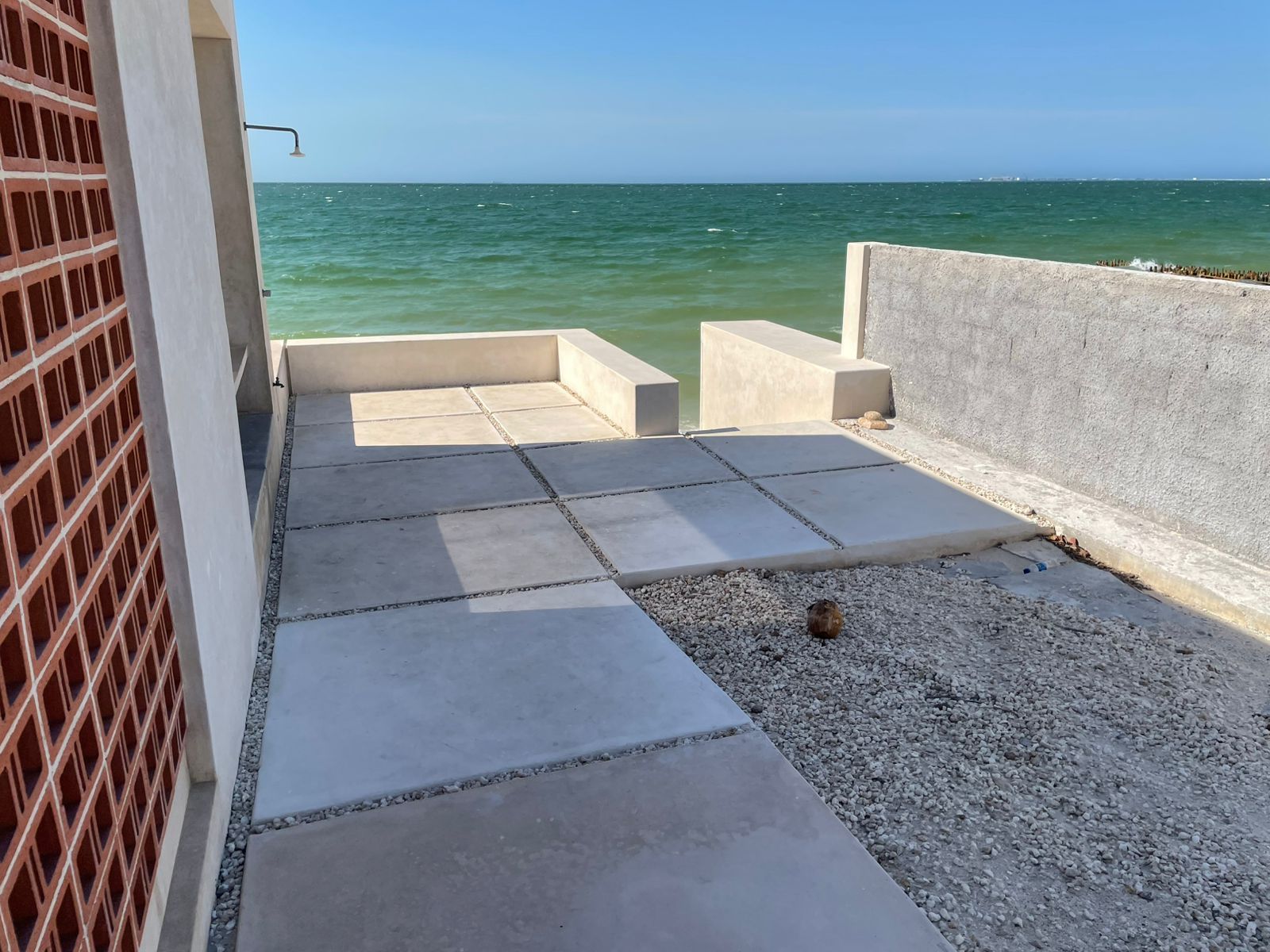 Seller is asking $10,000,000 pesos for this land on the shore of Chelem beach. There are two buildings in this property: one apartment with sea view, kitchen and breakfast bar, bathroom and pool and another that works as a warehouse.